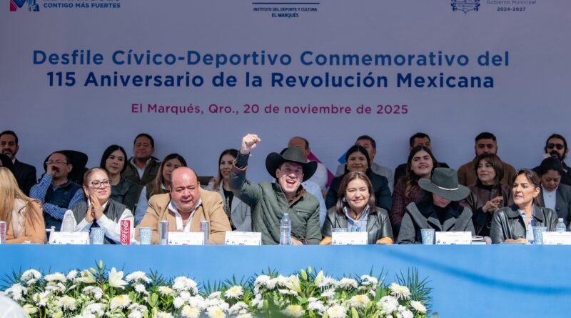 El presidente municipal de El Marqués, Rodrigo Monsalvo Castelán, acompañado de su gabinete, presenció el desfile cívico deportivo en conmemoración del CXV aniversario del inicio de la Revolución Mexicana, donde participaron 33 contingentes y asistieron alrededor de 3 mil 500 personas entre espectadores y partícipes.