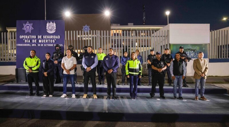 La secretaria de Gobierno, Cristina Fernández de Cevallos y el secretario de Seguridad Pública, Ángel Rangel, dieron el banderazo de arranque del Operativo “Día de Muertos”, a fin de que las familias de Corregidora disfruten las celebraciones de forma segura y tranquila.