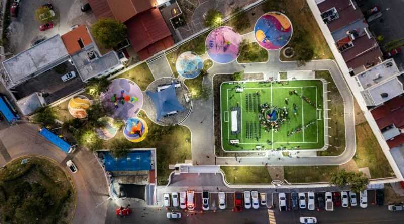 _• El parque cuenta con cancha de futbol, juegos y áreas de descanso enfocadas en la recreación de las familias._
