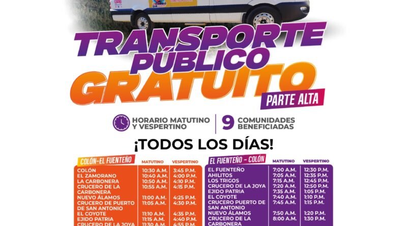 ● Transporte Público Gratuito para más de 4 mil colonenses de 9 comunidades.